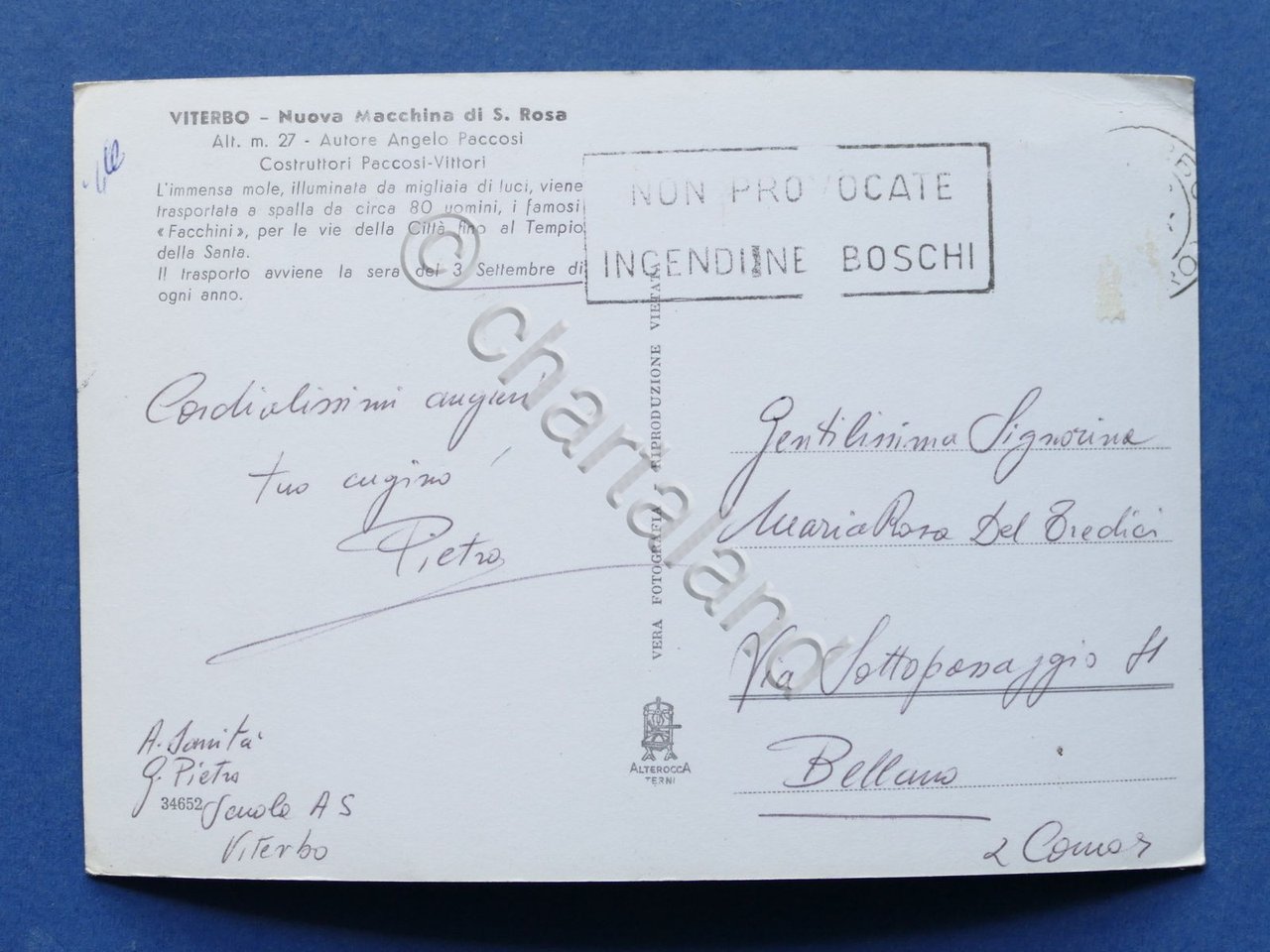 Cartolina Viterbo - Nuova Macchina di S. Rosa - 1960 ca. 1960 ca. Cartolina formato grande - viaggiata Condizioni buone, come da foto Piccoli segni del tempo Per appassionati, studiosi e collezionisti