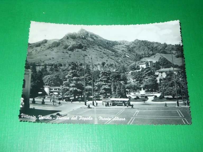 Cartolina Vittorio Veneto - Piazza del Popolo - Monte Altare 1957.