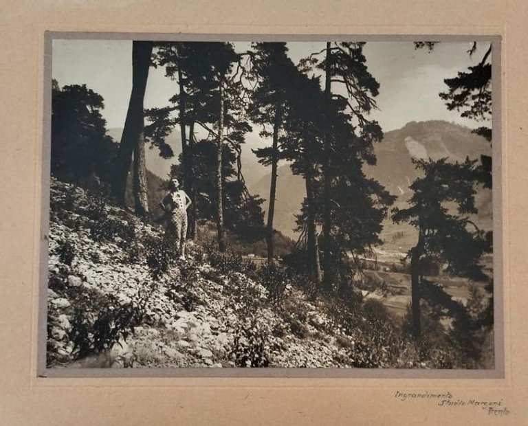 Due fotografie in bianco e nero di cm 23x17 su cartoncino di cm 40x30. In basso a destra è segnata a matita l'annotazione "Ingrandimento Studio Margoni Trento". Si vendono insieme.\r\n Condizioni : USATO - Stato : Buono, ordinari segni d'uso e del tempo. Altre note : L'epoca si evince dalla chiusura nel 1925 dello studio di Giuseppe Margoni a Trento. Questo stesso studio fu in seguito rilevato dai fratelli Pedrotti, che si trasferirono così da Bolzano a Trento. IL PREZZO SI RIFERISCE ALLE DUE FOTO INSIEME.