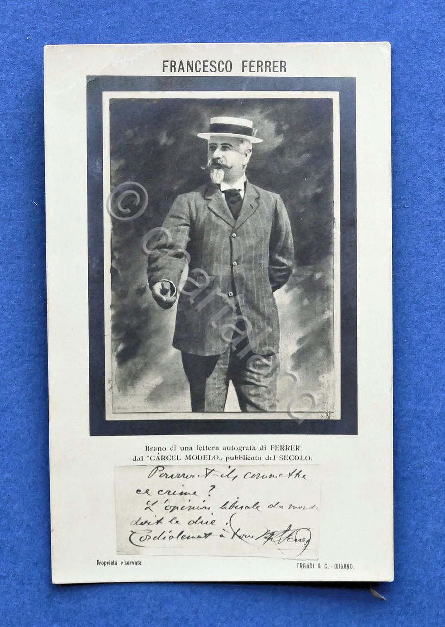 Cartolina Personaggi Famosi - Anarchico Francesco Ferrer - 1910 ca.