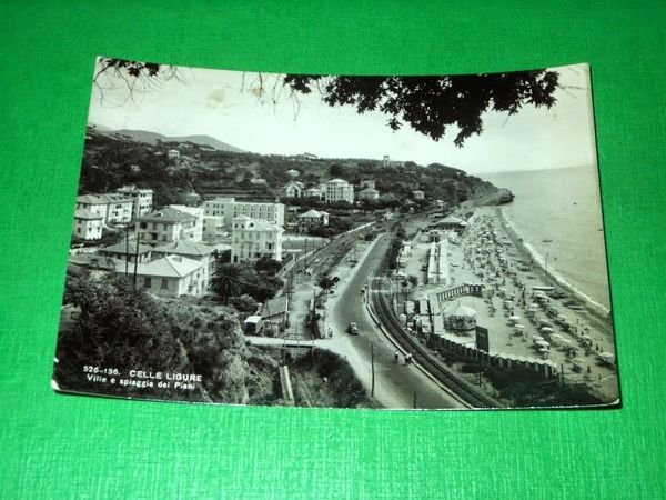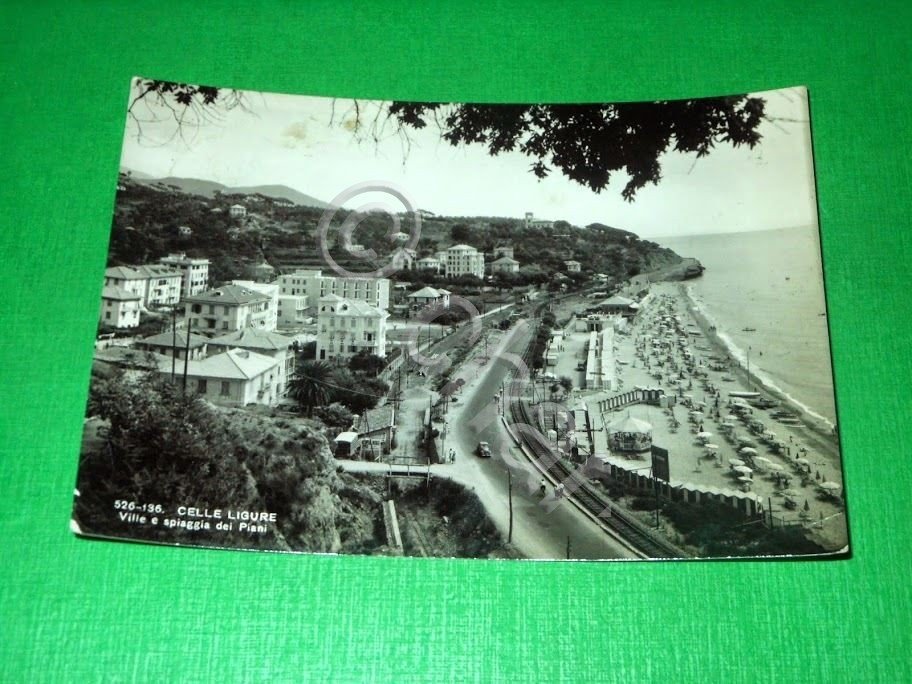 " *** Cartolina Celle Ligure - Ville e spiaggia dei Piani. La cartolina è viaggiata. Datata 1952. Formato grande. Per appassionati, studiosi e collezionisti