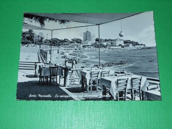 " *** Cartolina Santa Marinella - La spiaggia vista dal Ristorante Sirenetta. La cartolina è viaggiata. Datata 1960. Formato grande. Per appassionati, studiosi e collezionisti