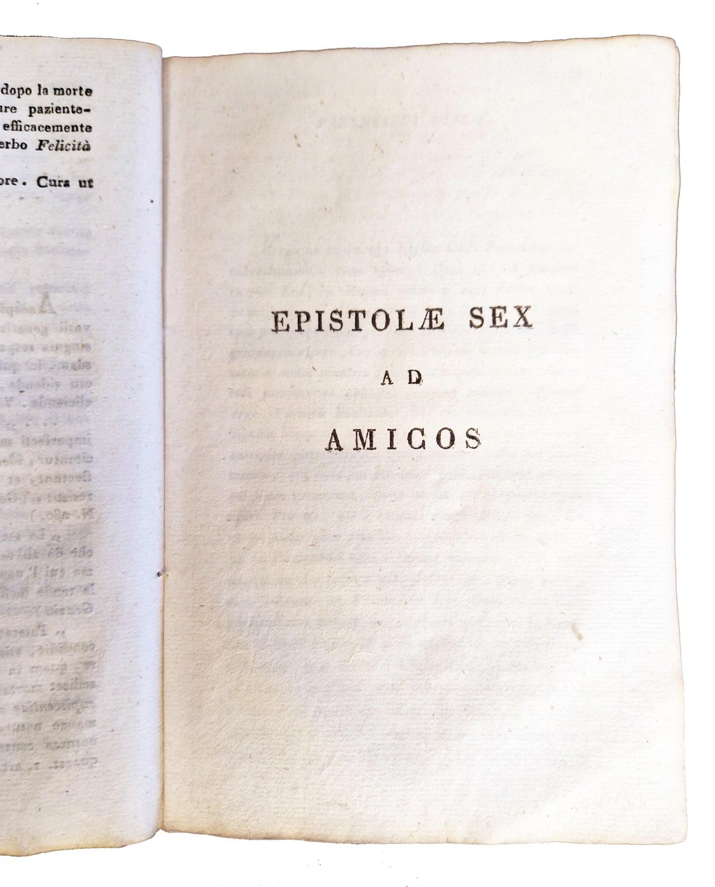 in-8°, 182x120 mm, leg. coeva in brossura, con una copertina in carta spessa con decori ai piatti e al dorso; raccolta in un volumetto di diverse opere di natura epistolare-teologica; pp. 10, 20, 29, 40, 14, 24, 47, 18. [1.]: s.l. : s.n., s.d. [2.]: Veronae: typis Tommasi. [3.]: Patavii: ex officina sociorum titulo Minerva, 1819. [6.]: Fornaroli, Domenico. Verona: dalla tipografia Giuliari, 1819. Rif.: [1.]: IT\ICCU\PUVE\026255. [2.]: IT\ICCU\UBOE\114753. [3.]: IT\ICCU\PUVE\029847. [4. e 5.]: n.t. [6.]: IT\ICCU\PBEE\001887. Cond.: Leggere tracce d'uso. Carte pulite. Esemplare molto buono.