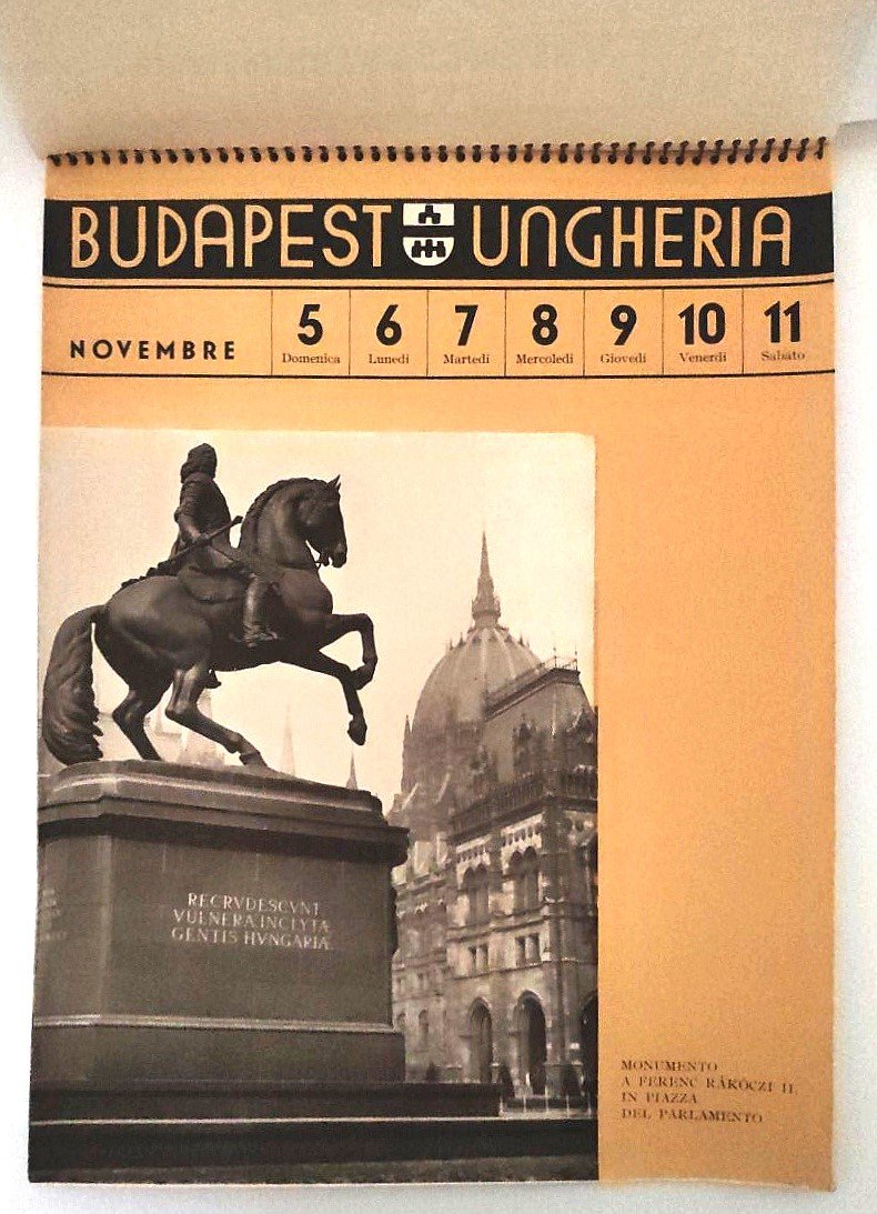 1939 Budapest Ungheria Calendario settimanale Ufficio Turistico di Budapest