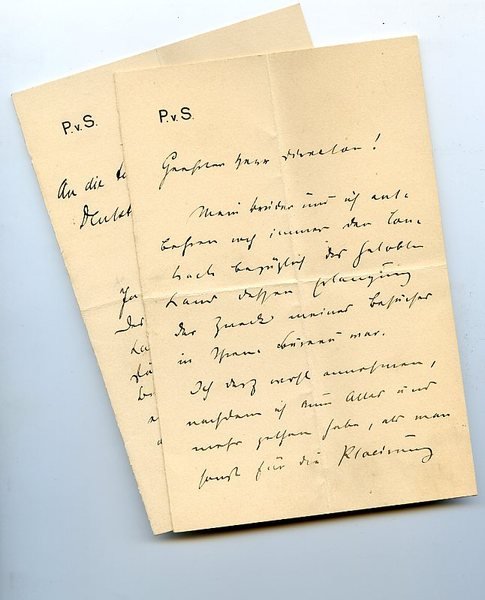 Zusammen (3+1¾ =) 4¾ SS. auf 4 (= 2 Doppel-)Blatt. 8vo. An die Direktion des Deutschen Volkstheaters in Wien: "In Bezug auf die Besetzung des Schwankes 'Das gelobte Land' möchte ich im Einverständnis mit meinem Bruder Ihnen schon jetzt einige Propositionen für das Hauptsächliche vorlegen [.]". - "Das gelobte Land" war eine Gemeinschaftsarbeit von Paul und seinem Bruder Franz Schönthan von Pernwaldt. - Anfangs eine militärische Laufbahn anstrebend, musste der geborene Wiener aus Rücksicht auf seine Gesundheit den Dienst quittieren, wandte sich dem Journalismus zu und war 1887-90 in Berlin Mitredakteur der Berliner "Lustigen Blätter". Anschließend wieder in Wien, wurde er 1892 Redakteur des "Wiener Tagblatts" und hatte später die Leitung von dessen Feuilletonredaktion inne. Von 1902 bis zu seinem Tod war der Verfasser von Humoresken und Theaterstücken (darunter gemeinsam mit seinem Bruder Franz, 1849-1913, das Erfolgsstück "Der Raub der Sabinerinnen", UA 1884) für die "Wiener Zeitung" tätig. - Auf Briefpapier mit gepr. Initialen.