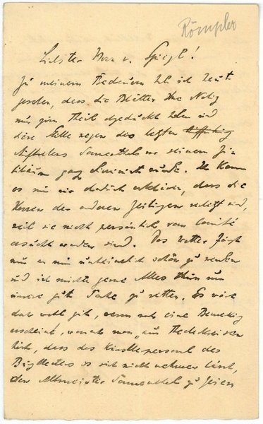 Zus. (2+1 =) 3 SS. auf 2 Bll. (Qu.-)8vo. An den Redakteur Edgar von Spiegl (1833-1908): "Zu meinem Bedauern habe ich heute gesehen, dass die Blätter die Notiz nur zum Theil abgedruckt haben und diese Stelle wegen des letzten Auftretens Sonnenthals vor seinem Jubiläum ganz eliminirt wurde. Ich kann es mir nur dadurch erklären, dass die Herren der anderen Zeitungen verletzt sind, weil sie nicht persönlich vom Comité ersucht worden sind [.]" (a. d. Br. v. 28. V. 1898). - Der Brief v. 27. VI. 1900 mit der Bitte um Reservierung von zwei Plätzen für eine Aufführung von Sudermanns "Die Schmetterlingsschlacht" im Wiener Burgtheater. - Alexander Römpler war Schauspieler und Regisseur am Wr. Burgtheater, Lehrer am Wr. Konservatorium für Musik und Darstellende Kunst und mit Hedwig Bleibtreu verheiratet, die das gemeinsame Haus in der Spöttelgasse 71 nachdem ihr Mann 1909 an einem Herzleiden verstorben war, an Arthur Schnitzler verkaufte.