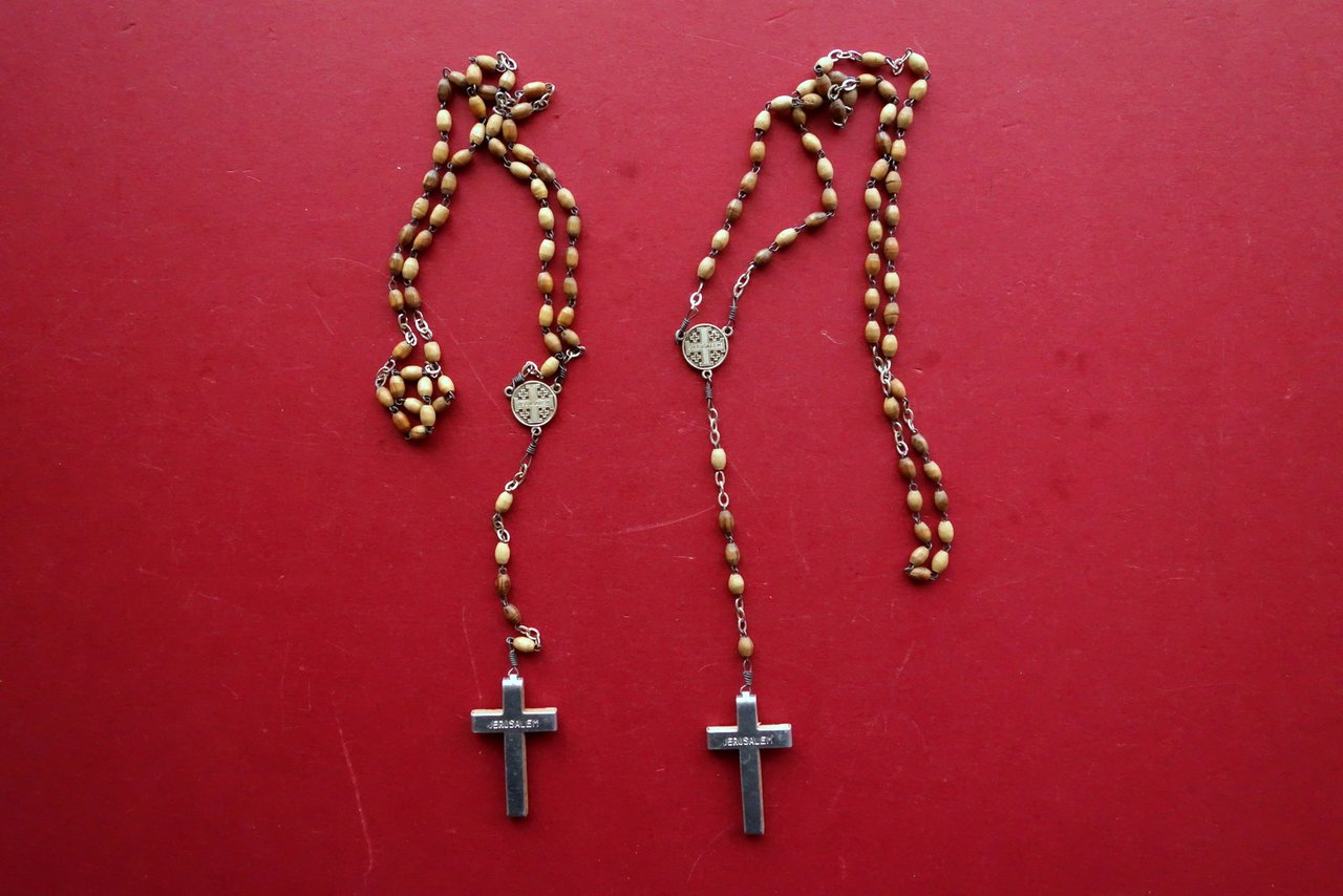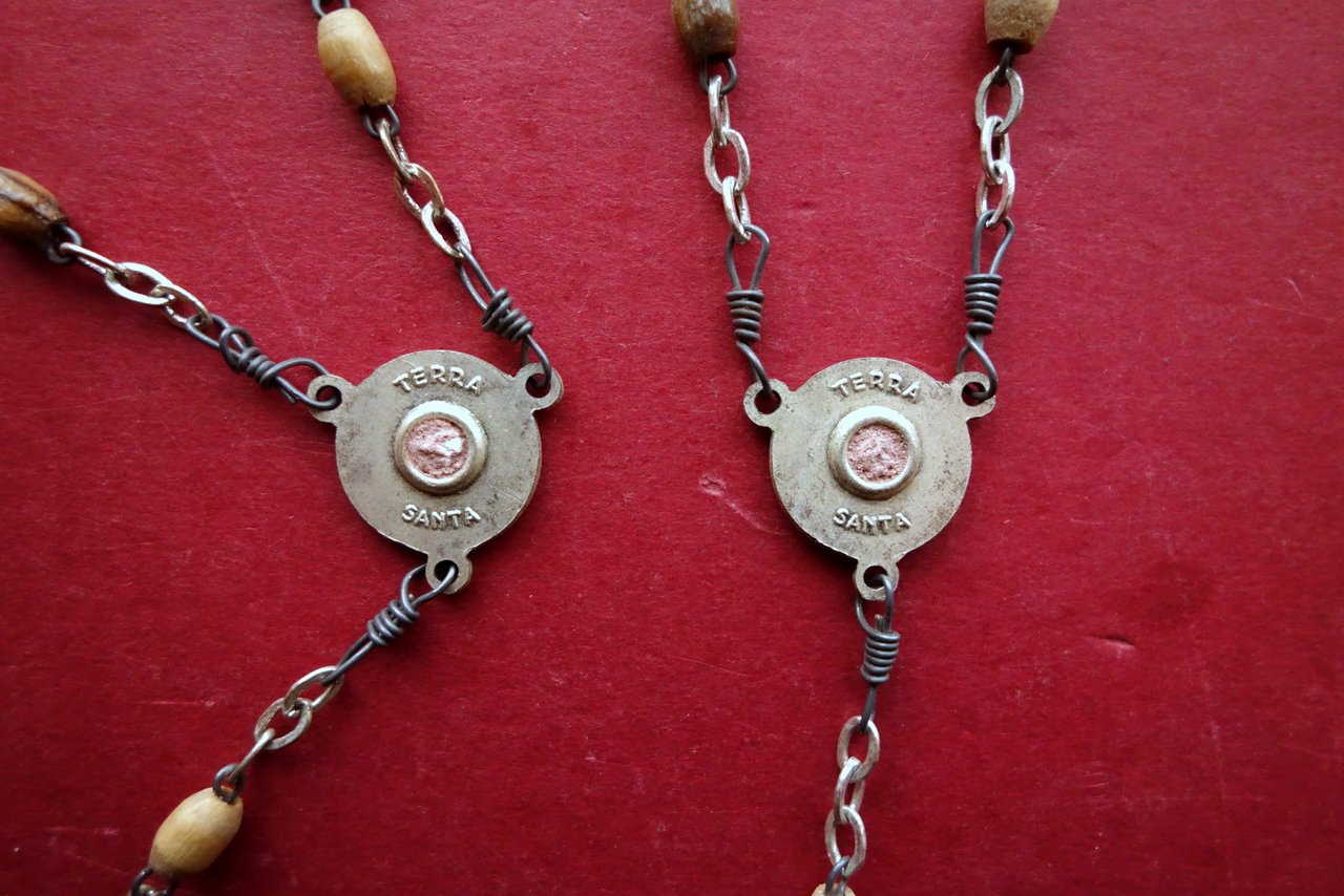 2 Rosari in Legno d'Ulivo Reliquie di Terra della Terra Santa Gerusalemme