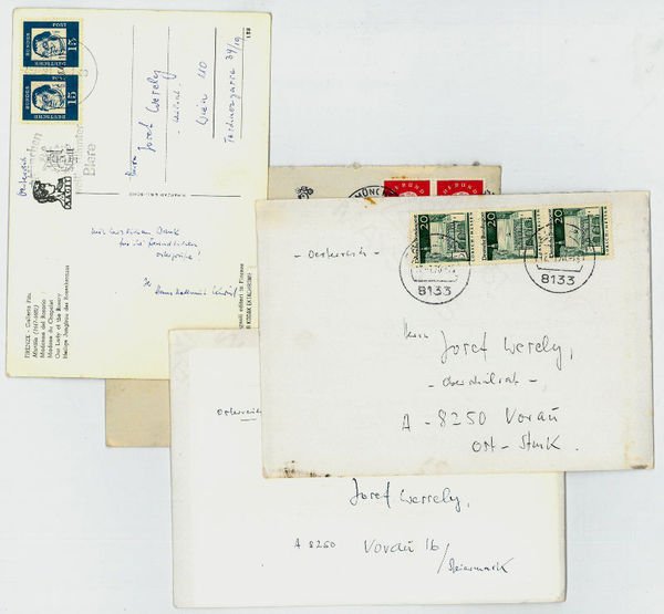 3 eigenh. Briefkarten und 1 eh. Bildpostkarte mit U.