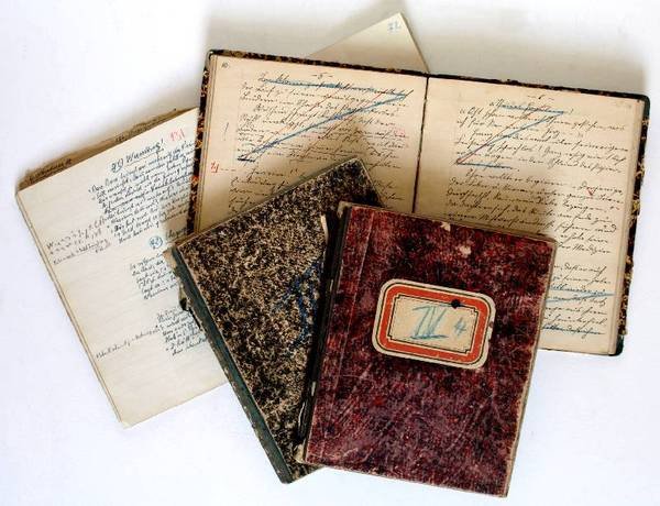 I: 10 Bll. Notizen zu Röntgen und Röntgenröhren, 116 SS. Texte, 1 Bl., 62 SS. Aufzeichnungen medizinischen Inhalts. - II: 161 SS., 9 Bll. - III: 236 SS. - IV: 60, 53, (1), 14, (1), 1 SS., 15 Bll., 40 SS. Notizen. Marmorierte Halbleinenbände der Zeit. Kl.-4to. Beiliegend mehrere tls. eh. Manuskriptblätter. Matschers Manuskriptbücher enthalten neben gereimten Anekdoten und Dialektgedichten (Bd. I) auch kürzere (Bde. II und III) sowie zwei längere Erzählungen (Bd. IV: "Aus der Schattenseite" und "Die Kupplerin"). - Der aus Schwaz in Tirol gebürtige Erzähler studierte in Innsbruck Medizin und war später als Arzt in Meran und Wels tätig; zuletzt lebte Matscher, der gelegentlich auch unter dem Pseudonym Hans Blaas veröffentlichte, in Ried. - Die Einbände berieben und mit stärkeren, innen mit kleineren Gebrauchsspuren.