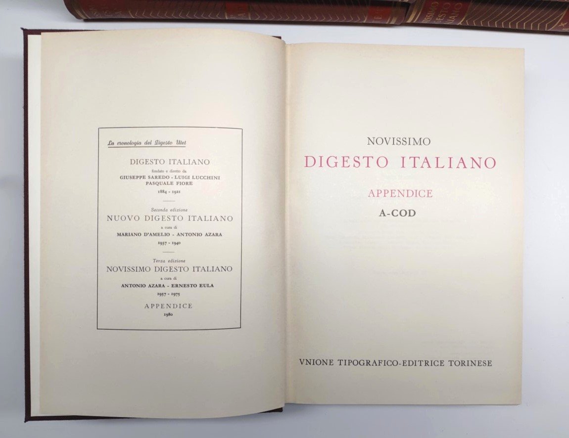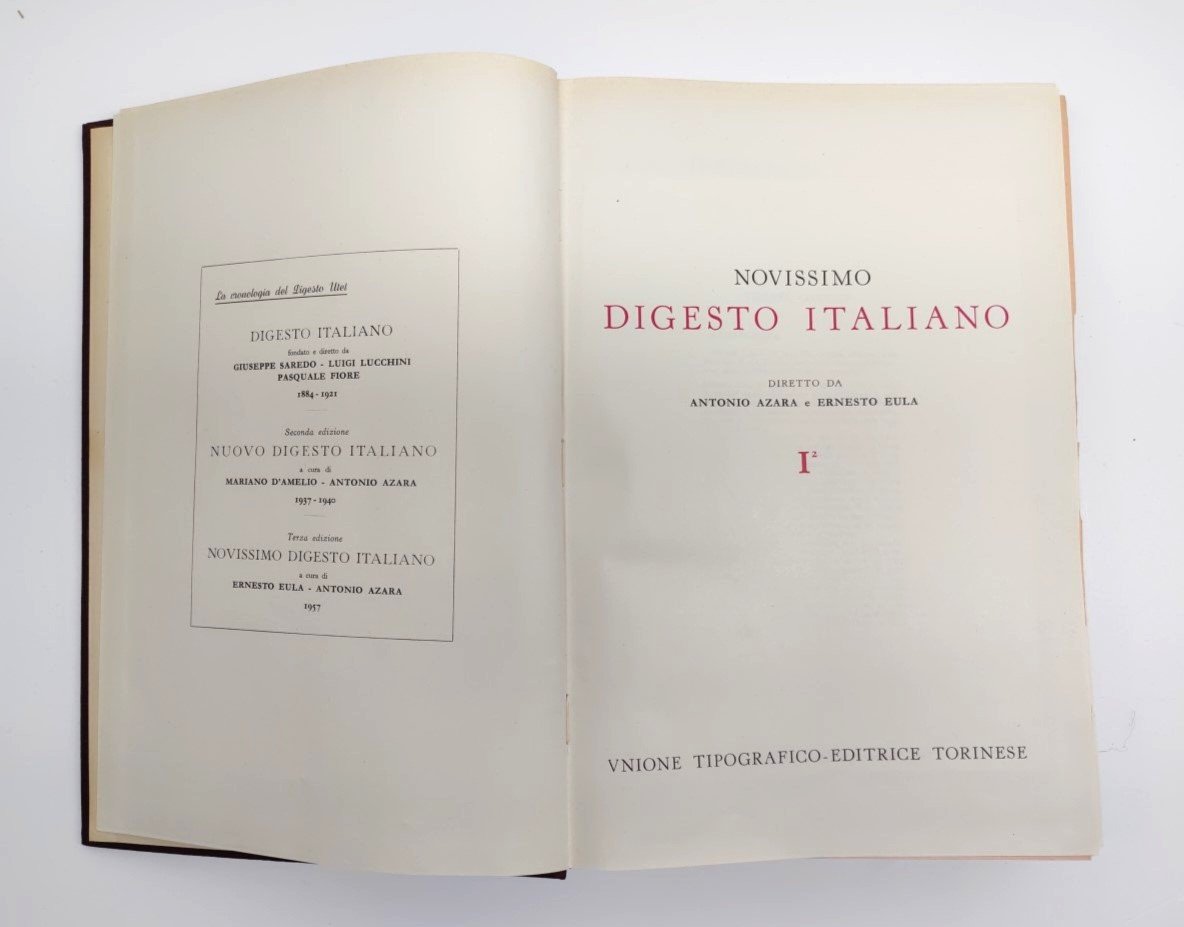 A. Azzara E. Eula Novissimo digesto italiano UTET 1957-1973 21 volumi + 7 di appendice