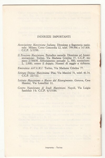 A.M.I. Origini scopi attivit‡ della Associazione mazziniana Italiana 4∞ edizione rinnovata Milano 1964