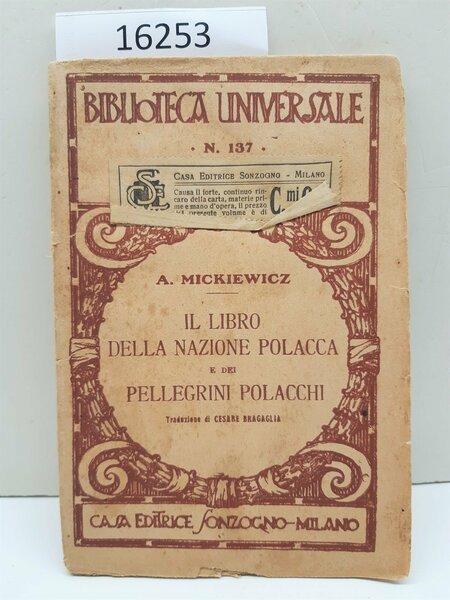 A. Mickiewicz Il libro della nazione polacca e dei Pellegrini polacchi Sonzogno