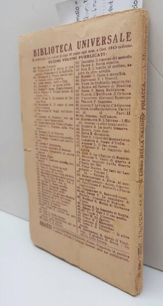 Copertina morbida editoriale con fioriture e aloni ai piatti, uno strappo riparato al dorso, segni del tempo, a fogli chiusi, tagli irregolari bruniti con fioriture, interno in buono stato pagine leggermente brunite numero pagine 92 cm 17 x 11,5 uno strappo di circa un centimetro al margine esterno alla quarta di copertina, tagli irregolari in particolar modo al margine inferiore