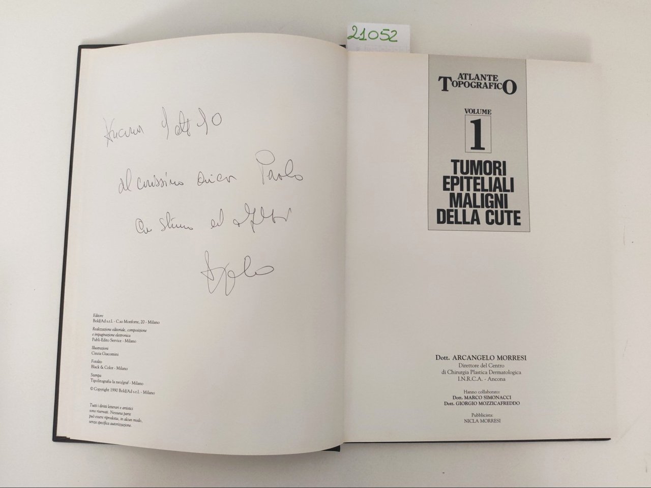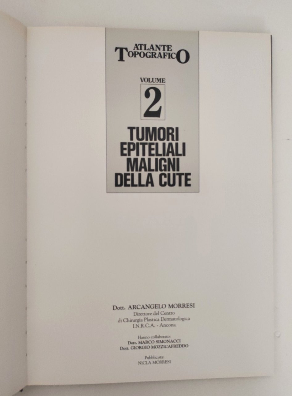 A. Morresi Tumori epiteliali maligni della cute Atlante topografico 2 vol. 1990 autografato