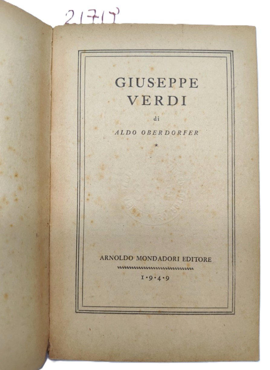 A. Oberdorfer Giuseppe Verdi edizione integrale Mondadori 1949