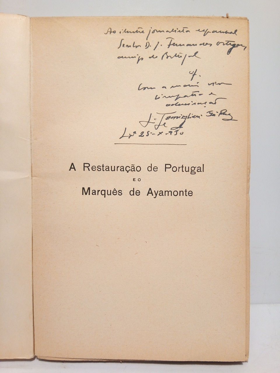 [PRIMERA EDICION].- Lisboa: Livraria Editora Guimaraes & Cia., 1930.- 250 p.; 8º (19 x 12,3 cm); Intonso; Texto en portugués; Rústica Ed.- RARO.* Dedicatoria autógrafa del autor en la portadilla. Excelente estado. PORTUGAL