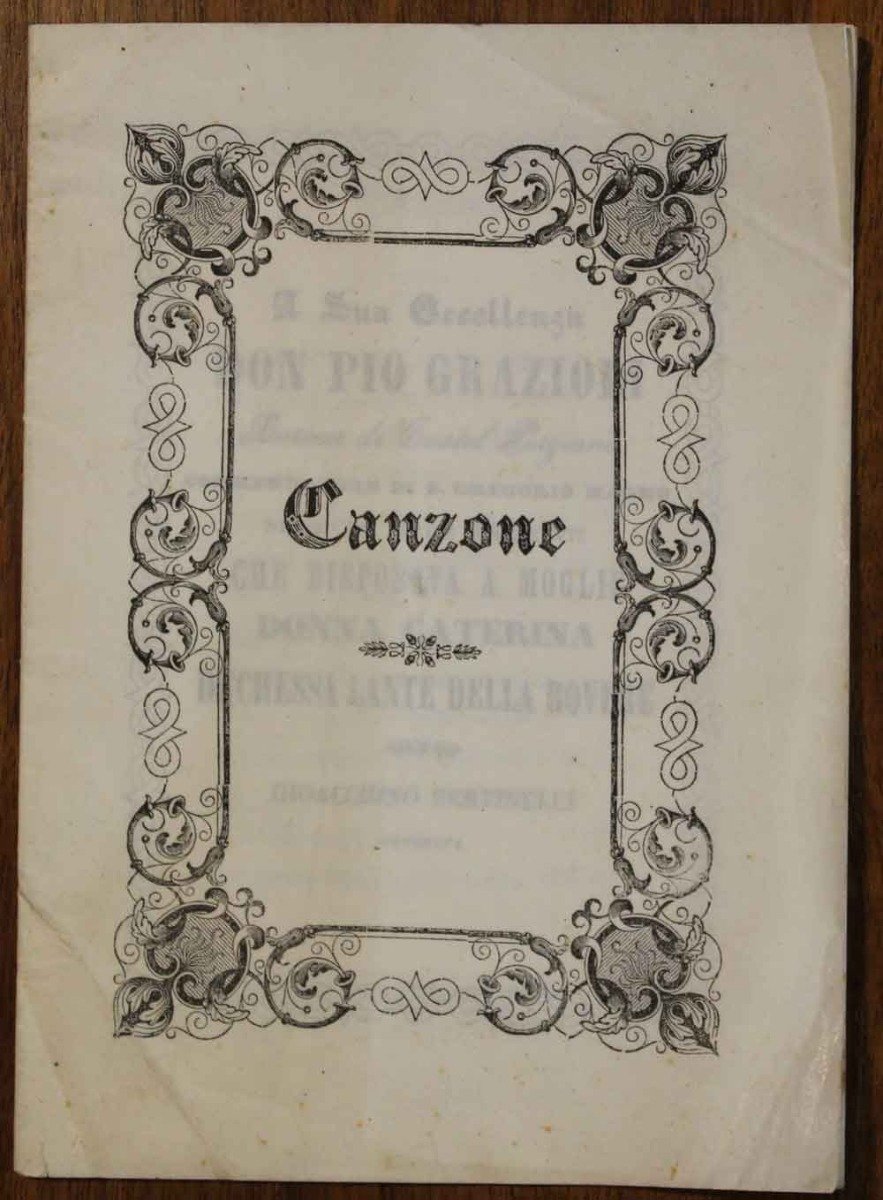 A Sua Eccellenza Don Pio Grazioli Barone di Castel Porziano. nel dì xv aprile 1847 che disposava a moglie Donna Caterina duchessa Lante della Rovere