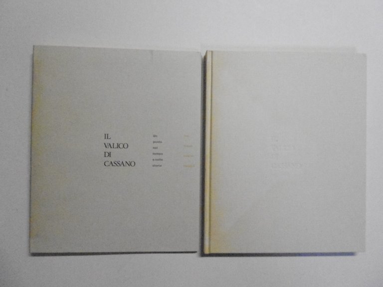 AA VV, Il Valico di Cassano Un ponte nel tempo e nella storia Aem, 1988; cm 28,5x23; pp. 144; ill. fotog. f. t. in b. n. Cartonato tutta tela edit. bianco con sovraccoperta edit. grigio. Condizioni di conservazione Esemplare in ottimo stato di conservazione. Una piega agli angoli sup. destri della coperta. Ingiallimento della coperta e del dorso della sovraccoperta. SETT24.L22800G