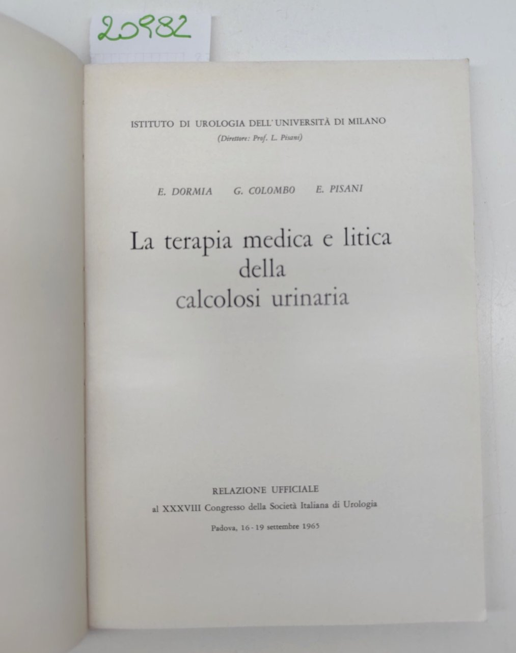 Aa.Vv. La terapia medica e litica della calcolosi urinaria 1965