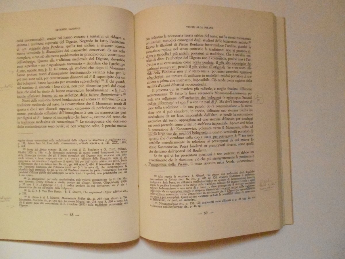 AA VV, Le Pandette di Giustiniano Storia e fortuna di un codice illustre Leo S. Olschki, Firenze, 1986. Cm 24x17; pp. 215. Cartoncino edit. color panna. Condizioni di conservazione Esemplare in buone condizioni di conservazione. Alcune macchiette alla coperta. In qualche pag. alcune parole sottolineate a matita leggera con note dal prof. G. Santini, docente di storia del Diritto. SETT180.L21580G