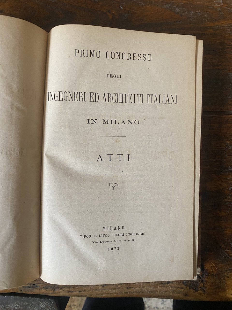AA.VV Primo Congresso degli Ingegneri ed Architetti italiani in Milano Atti 1875