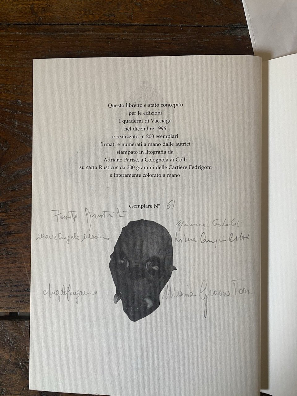 Immagini di Fausta Squatriti stampati in litografia Tiratura di 200 esemplari numerai firmata al colophon dalle sei autrici Esemplare numero 61 In 8° brossura editoriale I° edizione Illustrazioni bianco nero e colori Ottimo stato