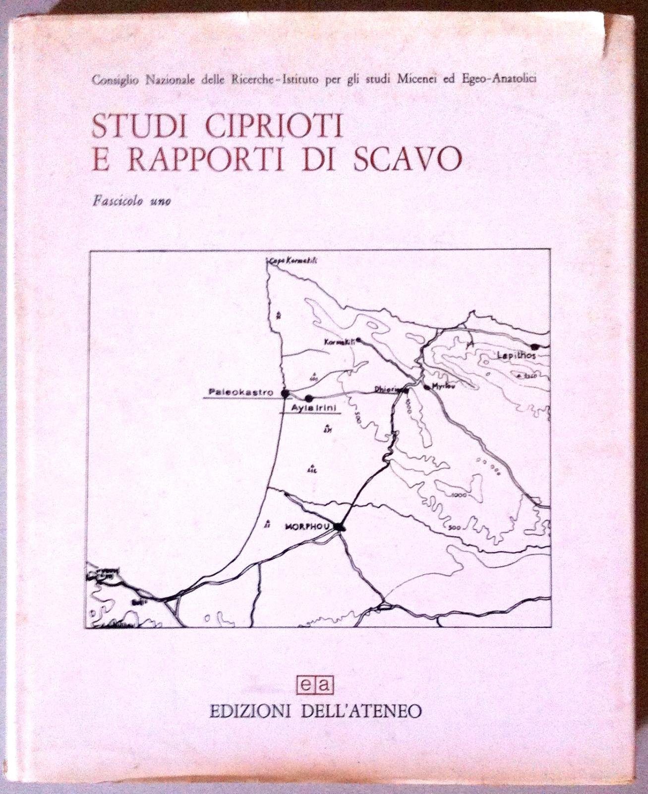 BIBLIOTECA DI ANTICHITA' CIPRIOTE STUDI E RAPPORTI DI SCAVO FASCICOLO UNO CONSIGLIO NAZIONALE DELLE RICERCHE ISTITUTO PER GLI STUDI MICENEI ED EGEO-ANATOLICI ROMA 1971 L4630 SOVRACCOPERTA EDITORIALE LEGGERMENTE SCIUPATA CON UNO STRAPPO AL MARGINE SUPERIORE DEL PIATTO ANTERIORE DORSO LEGGERMENTE BRUNITO E RETRO CON UNO STRAPPO DI CIRCA CM. 2 RIPARATO CON NASTRO ADESIVO AL MARGINE SUPERIORE, COPERTINA RIGIDA IN TELA ARANCIONE CON TITOLI AL PIATTO, PARTE INTERNA DELLA SOVRACCOPERTA CON LEGGERISSIME FIORITURE, FOGLI DI GUARDIA BIANCHE CON FIORITURE, TAGLI LEGGERMENTE SPORCHI CON LEGGERISSIME FIORITURE, IL LIBRO » STATO ESPOSTO AD UNA LEGGERA UMIDITA' E CIRCA DIECI PAGINE NEI PUNTI IN CUI ERANO INCOLLATE SONO STATE SEPARATE LASCIANDO LIEVI TRACCE DI ABRASIONE N. PAG. 259 CM. 31 X 25,5