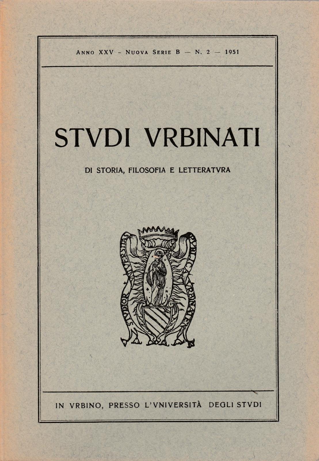 AA.VV. ANNO XXVI NUOVA SERIE N. 2 1951 STUDI URBINATI DI STORIA FILOSOFIA LETTERATURA IN URBINO PRESSO UNIVERSITA' DEGLI STUDI L 4520 COPERTINA MORBIDA EDITORIALE, INTERNO IN BUONO STATO N. PAG. 124 CM. 25 X 17