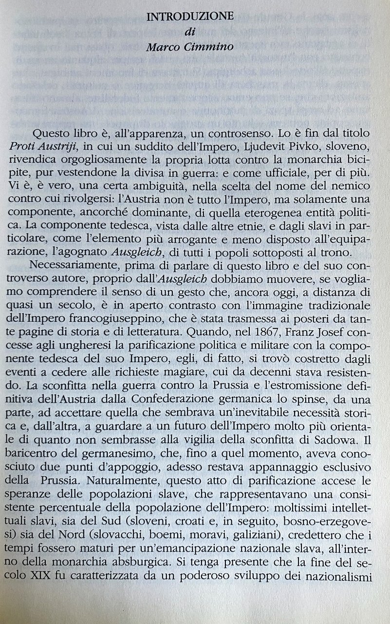 Soggetti: Storia contemporanea Prima Grande Guerra Mondiale Guerre Storiografie Memorie Biografie Irredentismo Austria-Ungheria Impero austroungarico Legionari slavi Fronte italiano Operazione Carzano 1917 Notte Soldati cecoslovacchi Esercito austro-ungarico Nemico Nemici Battaglione bosniaco Ex-Jugoslavia Reparto Verde Volontari Intesa Testimonianze Movimento Antiasburgico Resistenza Legioni slave Memoria collettiva Conflitti Memorialistica Mobilitazione Reggimento Krivosije Società slava Montenegro Croazia Serbia Golemi Scutari Koplik Isonzo Impresa Tolmino Tirolo Sief Lasta Lettere Meleti Fronti Combattimenti Battaglie Sconfitte Vittorie Conquiste Trincea Volantini Strigno Parigi Coalba Padula Kaputt Bolscevismo Comunismo Russia Francia Inghilterra Germania Alleanza Pattugliamento Vidmar Patria Valbella Telegrammi Reclutamento America Offensiva Prigionieri Drup Marchetti Armate Vicenza Spie Smaniotto Drupisti Divisioni Smobilitazione Janez Cospiratori Retrovie Oppio Fontanelle Agnedo Cerbero Reggimenti Pattugliamenti Granate Codice Penale Militare Bosniaci Pavlinka Levico Cadorna Verbale Rudolf Liska Tradimento Congiure Boemia Difesa Stampa Guido Cristofori Aldo Valori Scorpioni Aptak Inchieste Monte Zebio Caporetto Hlavácek Stane Col d'Ecchele Stoccareddo Informatori Disertori Franz Kreuz Rombon Santa Lucia Tedeschi Ausgleich Josef Ungheria Parificazione politica Magiari Sconfitta Prussia Confederazione germanica Sadowa Popolazioni Emancipazione nazionale Monarchia absburgica Nazionalismo Attentato Gavrilo Princip Apis Sokol Interventisti Cause Scoppio Origini Libri rari fuori catalogo Bibliografia Riferimento Letteratura Consultazione Collezionismo Saggi storici Critica Novecento Zgodovina Slovencev Asburgo Stiria Pannonia Slike iz borbe jugoslovanov italijanski Avstriji Eserciti Artiglieria Zar Truppe Tenente colonnello Italiani Jirsa Ufficiali Rarità Chicche librarie Adriatico Istria Dalmazia Trieste Fiume Servizi segreti Cesare Pettorelli Lalatta Finzi Diserzione Droghe Valsugana Trento Rancio serale Azione Sogno Congiurati Sfondamento Trentino Patrioti Bersaglieri Complotti Europa Cronache L'occasione perduta I.T.O. Informazioni Operanti Immobilismo Traditori Contemporary history First World War Wars Historiographies Memoirs Biographies Irredentism Austria-Hungary Austro-Hungarian Empire Slavic legionaries Italian front Operation Czechoslovakian soldiers Army Enemy Enemies Bosnian Battalion Ex-Yugoslavia Green Unit Volunteers Entente Testimonies Anti-Habsburg Movement Resistance Legions Collective memory Conflicts Memorials Mobilization Regiment Society Croatia Enterprise Tyrol Letters Fronts Fights Battles Defeats Victories Conquests Trench Leaflets Paris Bolshevism Communism France England Germany Alliance Patrol Homeland Telegrams Recruitment Offensive Prisoners Armed Spies Divisions Demobilization Conspirators Rear Opium Regiments Patrols Grenades Military Penal Code Bosnians Treason Conspiracies Bohemia Defense Press Scorpions Investigations Informants Deserters Germans Hungary Political equalization Magyars Defeat German Confederation Populations National emancipation Monarchy Nationalism Attack Interventionists Causes Outbreak Origins Rare books out of print Bibliography Reference Literature Consultation Collectibles Historical essays Criticism Twentieth century Styria Armies Artillery Tsar Troops Lieutenant colonel Italians Officers Rarities Book gems Adriatic Dalmatia Secret services Desertion Drugs Evening rations Action Dream Breakthrough Patriots Europe Chronicles Information Operatives Immobility Traitors Panslavismo