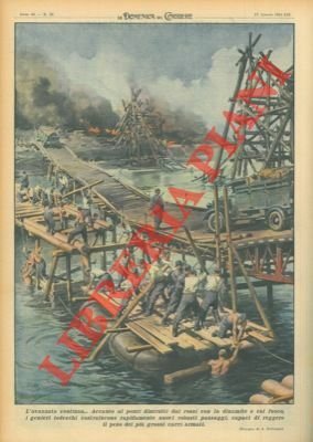 Accanto ai ponti distrutti dai rossi con la dinamite e col fuoco, i genieri tedeschi costruiscono rapidamente nuovi robusti passaggi, capaci di reggere il peso dei più grossi carri armati.