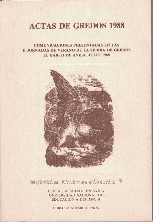 ACTAS DE GREDOS 1988. COMUNICACIONES PRESENTADAS EN LAS II JORNADAS DE VERANO DE LA SIERRA DE GREDOS. EL BARCO DE AVILA. JULIO 1988.