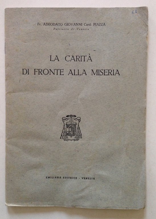 Adeodato Giovanni La Carit‡ di Fronte alla Miseria Emiliana Editrice Venezia