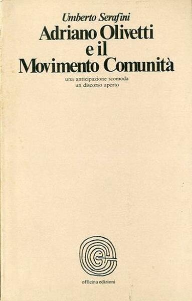 650 p. ; 24 x 15 cm. Paperbacks/Officina ; 10. Una raccolta di scritti editi e inediti di Umberto Serafini, a lungo dirigente del movimento politico fondato nel 1947 da Adriano Olivetti per promuovere una riforma dello Stato e della società in senso comunitario. Attraverso saggi, interventi d’occasione e articoli di una vita, il volume ripercorre da vicino la vicenda del Movimento Comunità e del suo fondatore, ricostruendo la storia di un’idea che rappresenta ancora oggi un’anticipazione scomoda e lungamente incompresa. In collaborazione con il Centro studi della Fondazione Adriano Olivetti. Brossura editoriale, coperta in cartoncino flessibile colorato, titolo impresso in nero al piatto e al dorso. Leggeri segni del tempo ai tagli, al dorso e ai risvolti per il resto libro integro. Codice libreria 7676.