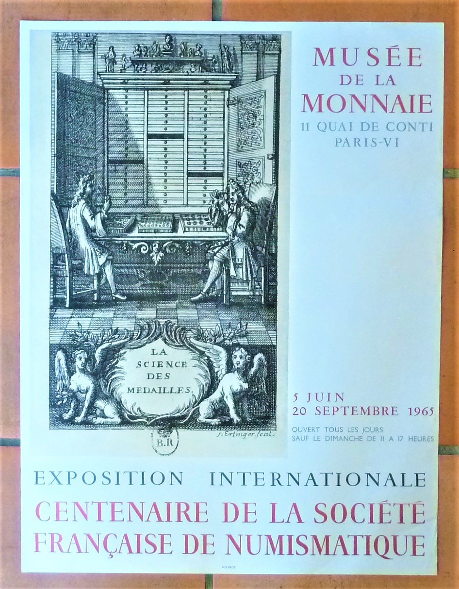 Affiche éditée à l'occasion de l'exposition internationale pour le "Centenaire de La Société Française de Numismatique"; tenue du 5 juin au 20 septembre 1965 au Musée.