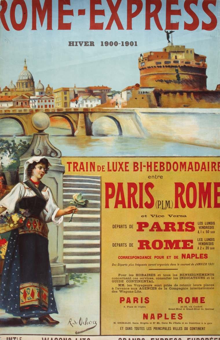 Affiche originale - Rome-Express. Hiver 1900-1901. Train de luxe bi-hebdomadaire entre Paris-Rome et viceversa...correspondance pour et de Naples.