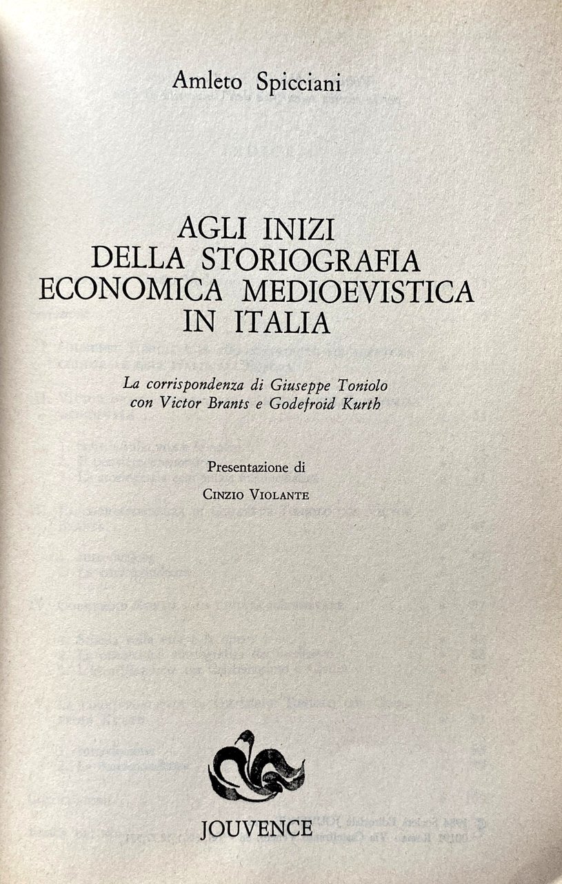 AGLI INIZI DELLA STORIOGRAFIA ECONOMICA MEDIOEVISTICA IN ITALIA. LA CORRISPONDENZA DI GIUSEPPE TONIOLO CON VICTOR BRANTS E GODEFROID KURTH | Libros antiguos y modernos | Amleto Spicciani, Giuseppe Toniolo, Victor Brants, Godefroid Kurth, Cinzio Violante