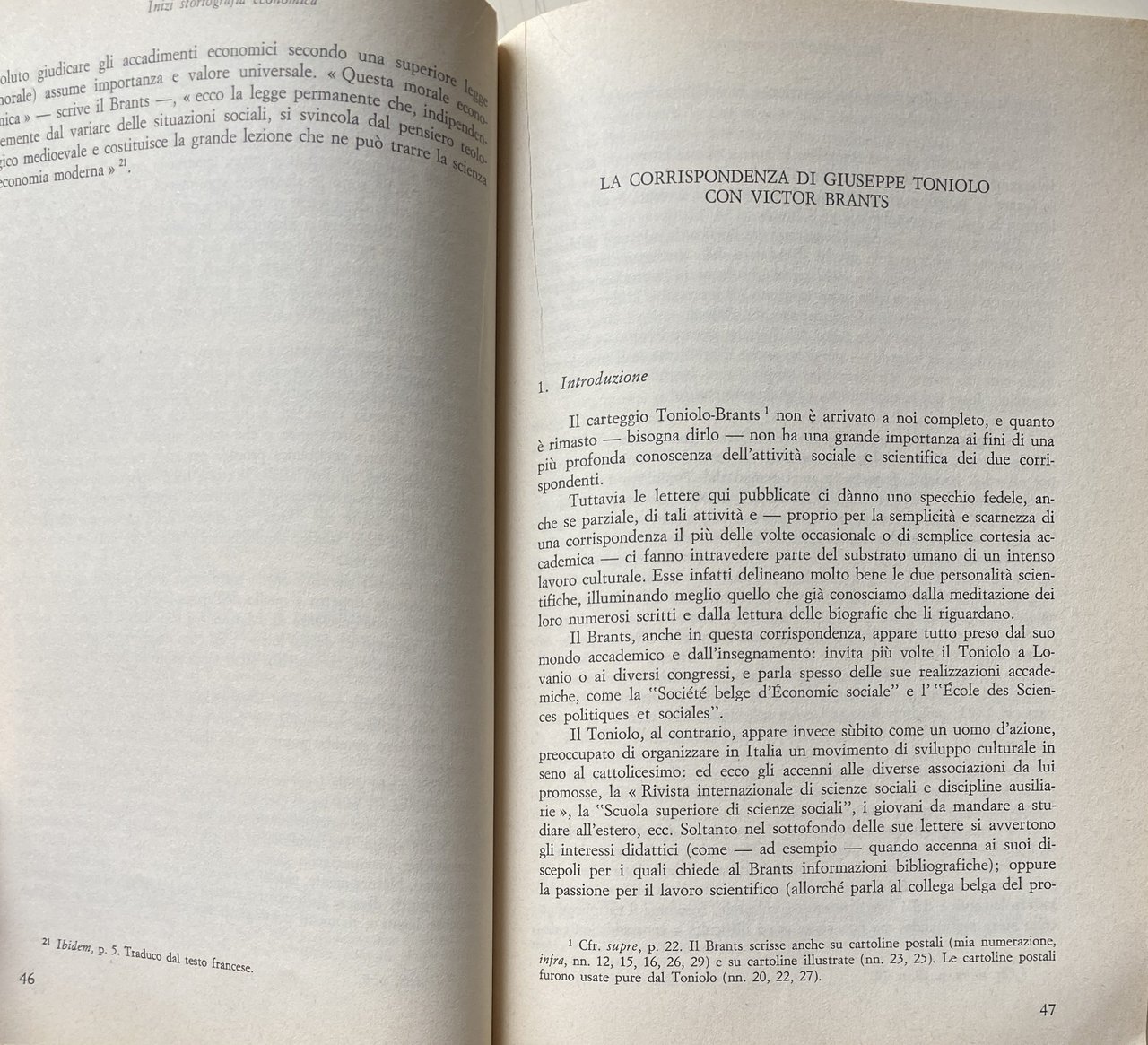 AGLI INIZI DELLA STORIOGRAFIA ECONOMICA MEDIOEVISTICA IN ITALIA. LA CORRISPONDENZA DI GIUSEPPE TONIOLO CON VICTOR BRANTS E GODEFROID KURTH