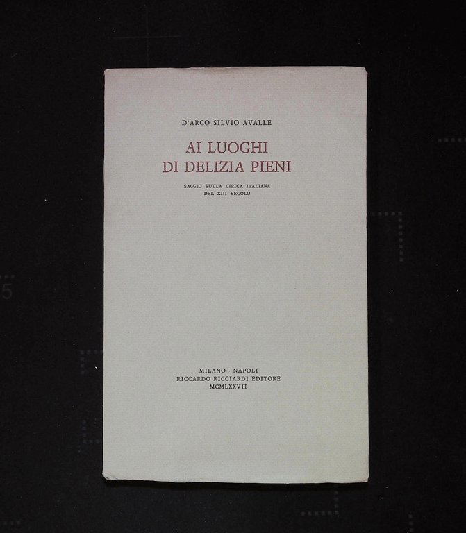 Ai luoghi di delizia pieni. Saggio sulla lirica italiana del XIII secolo | Libros antiguos y modernos | D'Arco Silvio Avalle