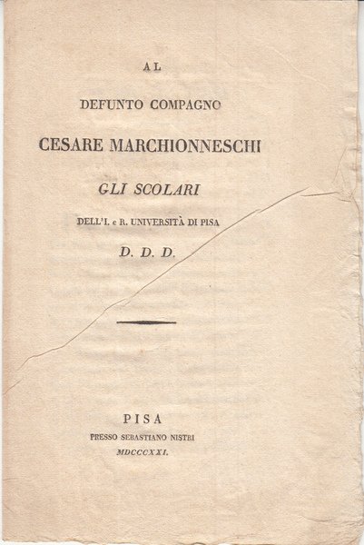 Al Compagno Cesare Marchionneschi Gli Scolari Dell'i. E R. Università Di Pisa D.d.d.