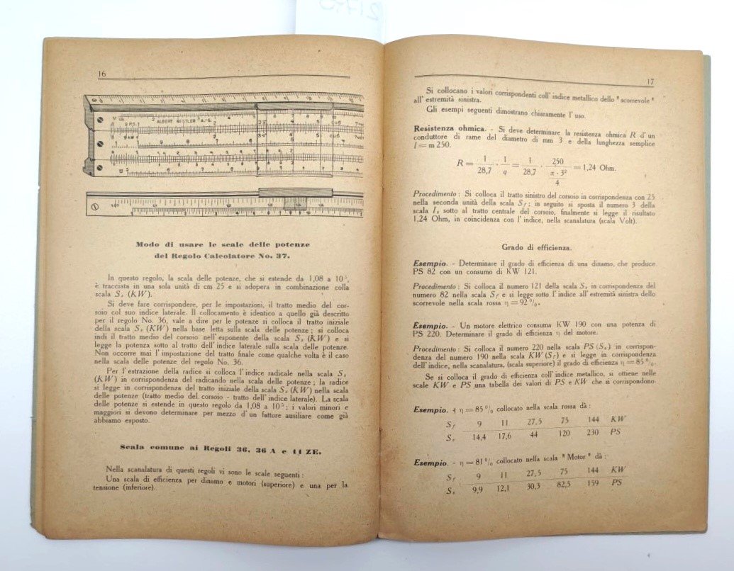 Albert Nestler I regoli calcolatori logaritmici Electro numero 11z-36-36a-37 1° edi. Nestler 1940