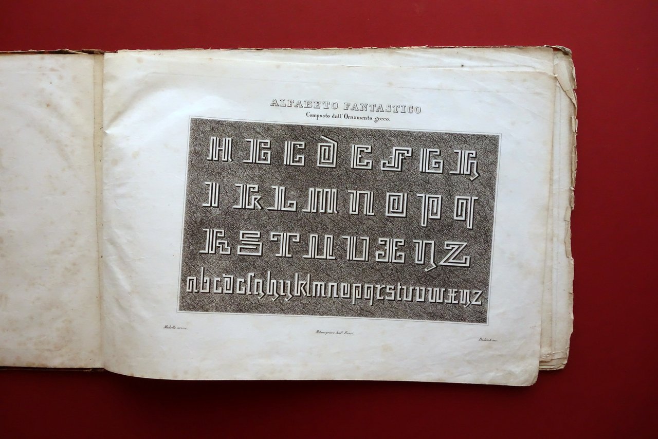 Album di calligrafia, Album di calligrafia costituito da 7 tavole in bianco e nero Italiano ecclesiastico antico"; "ecclesiastico antico"; "gottico preso dalle carte di Pisa -1500"; "alfabeto fantastico composto dall'ornamento greco"; "caratteri romani in iscorcio"; "caratteri romani a rilievo"; "carattere romano a rilievo e giacente" - album non completo Redenti inc. - presso Ant. Bossi, Milano, s. d. ma metà '800 circa; album di calligrafia costituito da 7 belle tavole inc. in b/n; retri bianchi. Le tavole sono inserite entro legatura d'epoca in mezza pelle con piatti marmorizzati. Album non completo. Condizioni di conservazione Condizioni discrete con tracce d'uso e leggeri segni del tempo, non completo; coperta con alcune mancanze e strappetti al rivestimento marmorizzato, diffuse abrasioni in particolare al dorso; graffietti. Tavole complessivamente in buono stato con leggero foxing, sgualcite e con qualche piccola macchietta; due tavole allentate e una staccata dal corpo del testo. Album ottocentesco di calligrafia, con belle tavole di grande formato. In condizioni come da foto e descrizione. SC03.D19399 N "