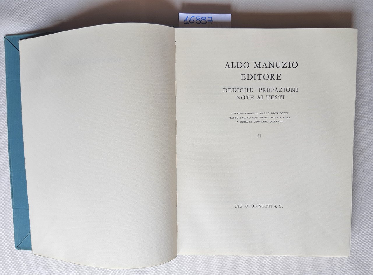 Aldo Manuzio Editore dediche prefazioni note ai testi Ing C Olivetti e C Verona 1975
