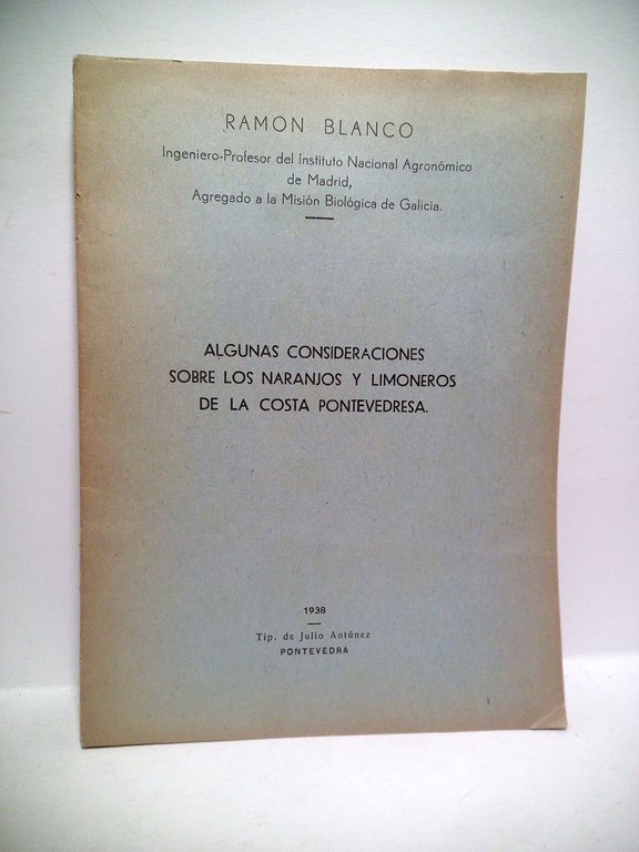 Pontevedra: Tip. de Julio Antúnez, 1938.- 15 p.; 4º menor (21,4 x 15,8 cm).* Con una dedicatoria autógrafa del autor. GALICIA