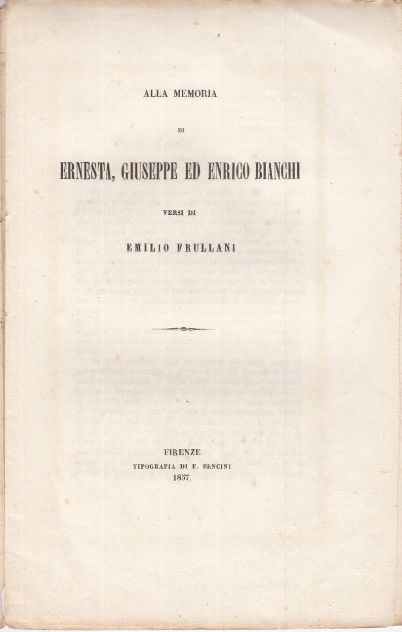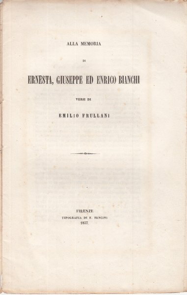 Alla Memoria Di Ernesta Giuseppe Ed Enrico Bianchi Versi Di Emilio Frullani | Libros antiguos y modernos |