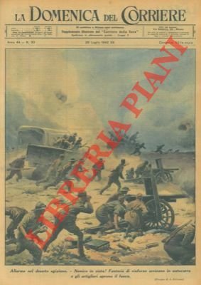 Allarme nel deserto egiziano. - Nemico in vista! Fanterie di rinforzo arrivano in autocarro e gli artiglieri aprono il fuoco.