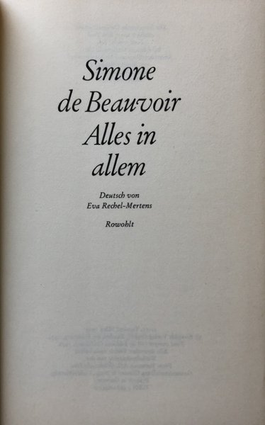 ALLES IN ALLEM | Libros antiguos y modernos | Simone De Beauvoir