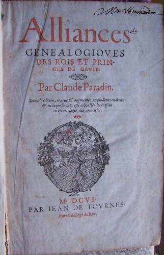 Alliances genealogiques des Rois et Princes de Gaule. Seconde edition, reveue et augmentée en plusieurs endroits : et en laquelle ont esté adjoustés les blasons ou escartelages des armoiries