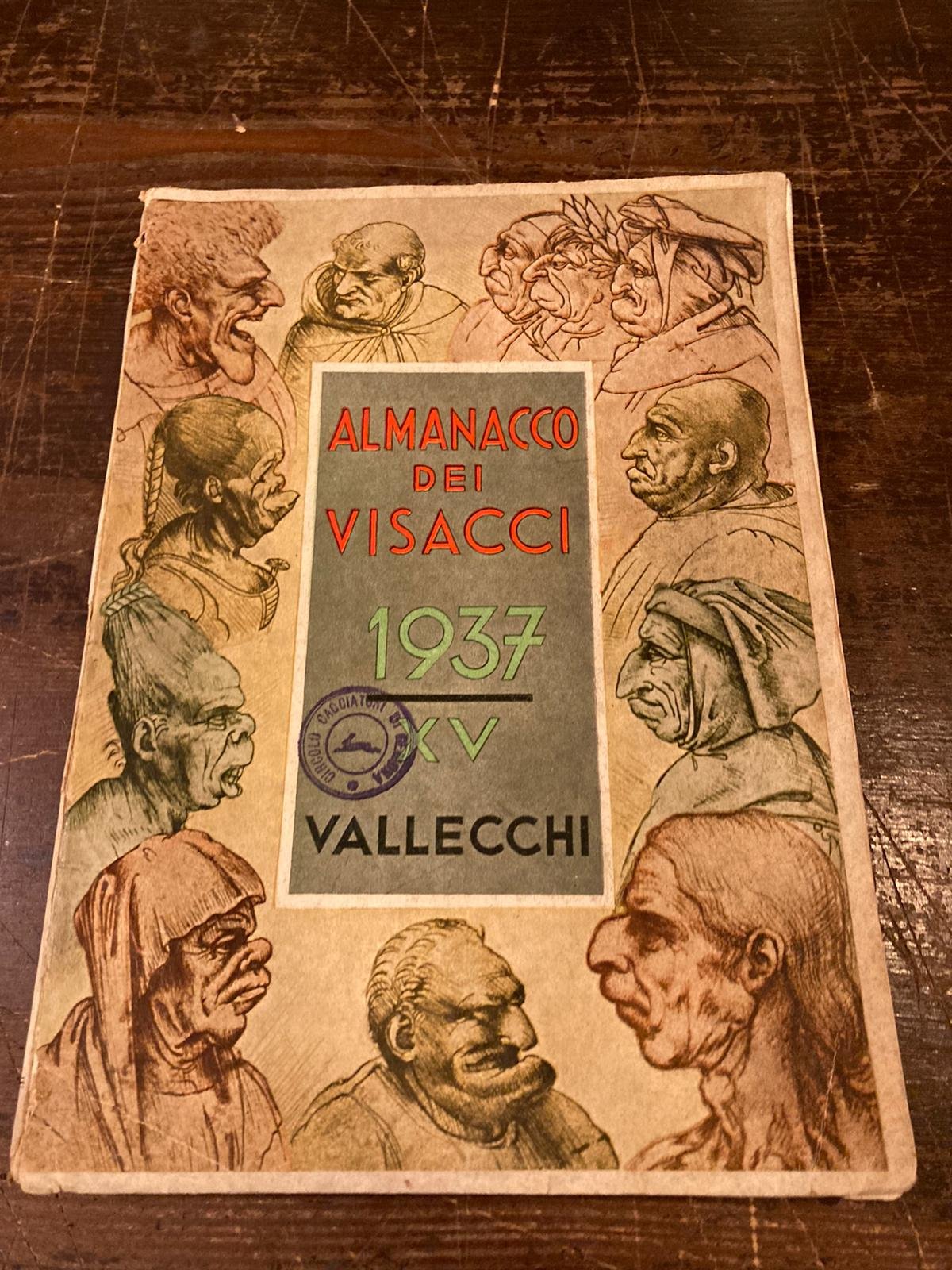 In-8, pp. 327, (1), brossura editoriale figurata con titoli al dorso e al piatto anteriore. Numerosissime illustrazioni bianco e nero nel testo e tavole fuori testo di artisti come Bernardini, de Pisis, Severini, Soffici, Sanminiatelli, Ponti, etc. e tavole pubblicitarie figurate. Timbri di precedenti possessori. Ottimo stato. Scritti di vari autori, fra i massimi esponenti della letteratura italiana del tempo, riguardanti i più vari argomenti. Fra gli autori degli scritti: Pavolini, Bargellini, Trilussa, Montale,Cecchi, Tumiati etc. Il nome dell' almanacco, pubblicato per quattro annate a partire dal 1937, deriva dalla nota trattoria 'dei Visacci'. La storia dell«Almanacco» nasce e si sviluppa attorno alla figura di Enrico Barfucci, ideatore e promotore di iniziative destinate ad esaltare la civiltà fiorentina, il quale, insieme alla famiglia dei Vallecchi, realizza le Cene dei Visacci, tenute nellOsteria di Giovacchino e alle quali partecipano i più autorevoli esponenti della cultura. A conferma del pirotecnico eclettismo sia visivo che testuale si ricordano le sezioni 'Calendario commentato storico-artistico-letterario-gastronomico-umoristico' e 'Del buon mangiare. Ricettario gastronomico dei più celebri cuochi italiani e scritti vari'.