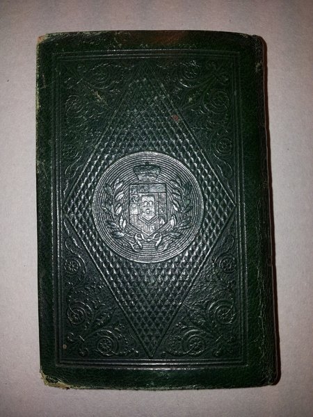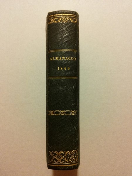 Un volume in 24mo (7x11,5 cm) di VIII-232- CLXVII pagine, due paesaggi incisi a doppia pagina all'inizio (Ponte della Maddalena, e Lucchio). Bella legatura in tutta pelle verde , impressioni a secco ai piatti con stemma dei Borboni, dorso liscio ornato e dorato, tagli dorati (angoli un po' smussati). Grazioso esemplare di lusso dell'Almanacco del ducato di Lucca, regnante nel 1843 Carlo Ludovico. Oltre al calendario, nell'Almanacco vengono passate in rassegna le case regnanti d'Europa, mentre nella seconda parte vi è un Annuario Diplomatico. Ottime condizioni. - il Ducato di Lucca (1815-1847) occupava una parte delle odierne province di Lucca, Massa e Carrara e Pistoia. Facevano parte del Ducato la valle del Serchio, con porzione della Garfagnana (attuali territori di Minucciano, Castiglione di Garfagnana, quasi interamente Gallicano e parte di Fosciandora, Coreglia Antelminelli, Pescaglia, Bagni di Lucca, Borgo a Mozzano), parte della Versilia (attuali territori di Massarosa, Viareggio e Camaiore), parte della riviera Apuana (attuale comune di Montignoso) e la pianura lucchese (attuali comuni di Lucca, Capannori, Porcari, Villa Basilica e parte di quelli di Altopascio e Pescia).