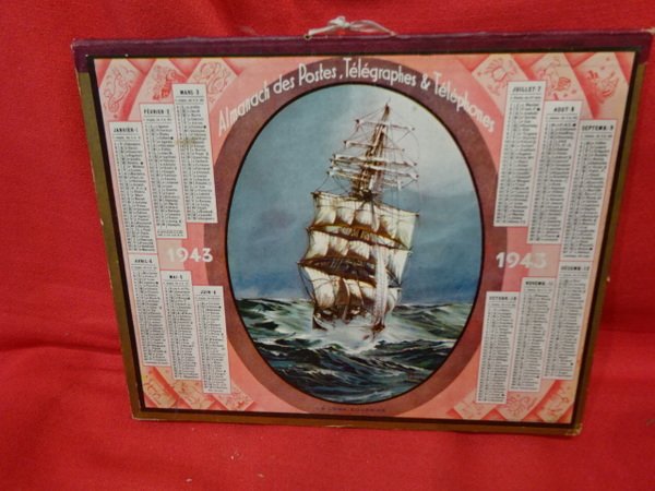 Rennes, Oberthur, Impr., Éditr., 1942; 264 x 213 mm, environ 20 pp., cartonnage d'éditeur illustré et imprimé. Carte postale, Télégraphique, Téléphonique et des Chemins de Fer du Dépt. De la Meuse. Carte des Chemins de Fer. Meuse - Service postal, Télégraphique et Téléphonique des Communes, etc. indicateur des Postes et des Télégraphes : 1° Régime intérieur. Poste aérienne. 2° Régime international. 3° Notions générales. 82. Émission des mandats étrangers. 83. Tarif des Colis postaux expédiés de la France continentale à destination de la Corse, de l'Algérie, de la Tunisie et les Colonies françaises. 84. Tarif des Colis postaux expédiés de la France continentale à destination des principaux pays étrangers. B. Services télégraphique et téléphonique. 39. Tarif télégraphique. - Régime intérieur. - Régime international. 39 bis. Cartes et Enveloppes pneumatiques. 40. Colonies et Étranger. Illustration « un Long Courrier » (bâtiment à voiles).